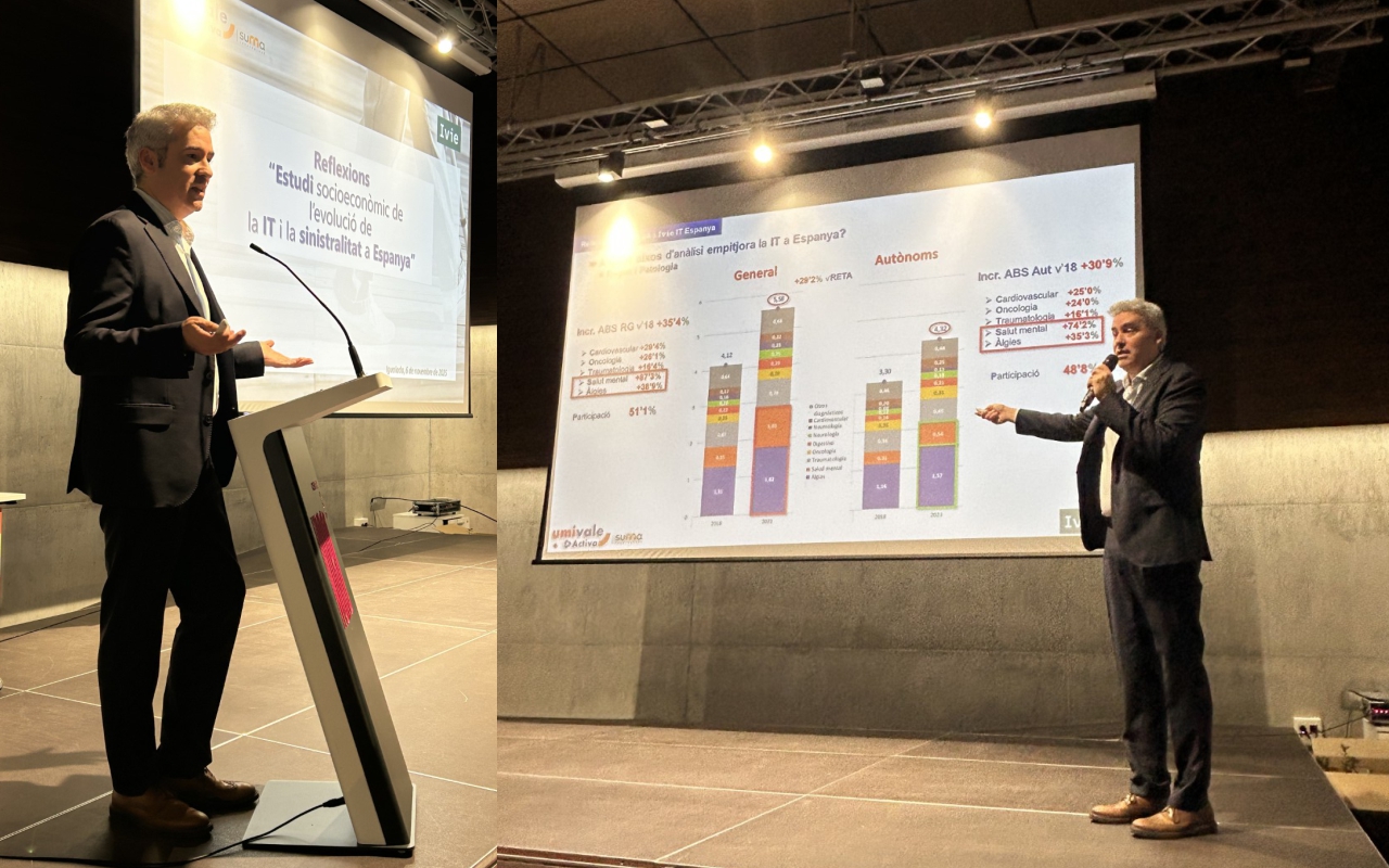 Una brillant exposició del representant de la mútua d’accidents Umivale Activa, Marc Mateo, va obrir la jornada dels Premis Empesa Saludable a Igualada. En la seva exposició va desgranar estadístiques fins ara desconegudes, donat que és el primer cop que un grup de recerca ha pogut accedir al banc de dades complet de la Seguretat Social pel que fa a baixes laborals.